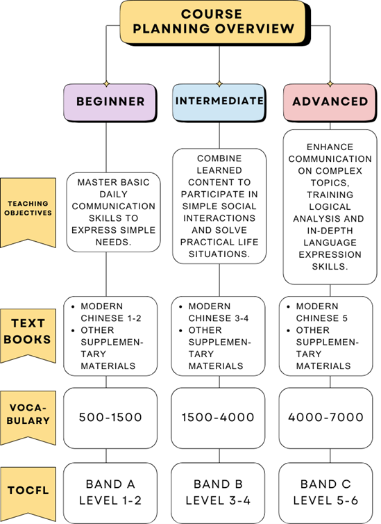 --Mandarin Language Center Course Types and Features Planning Table--